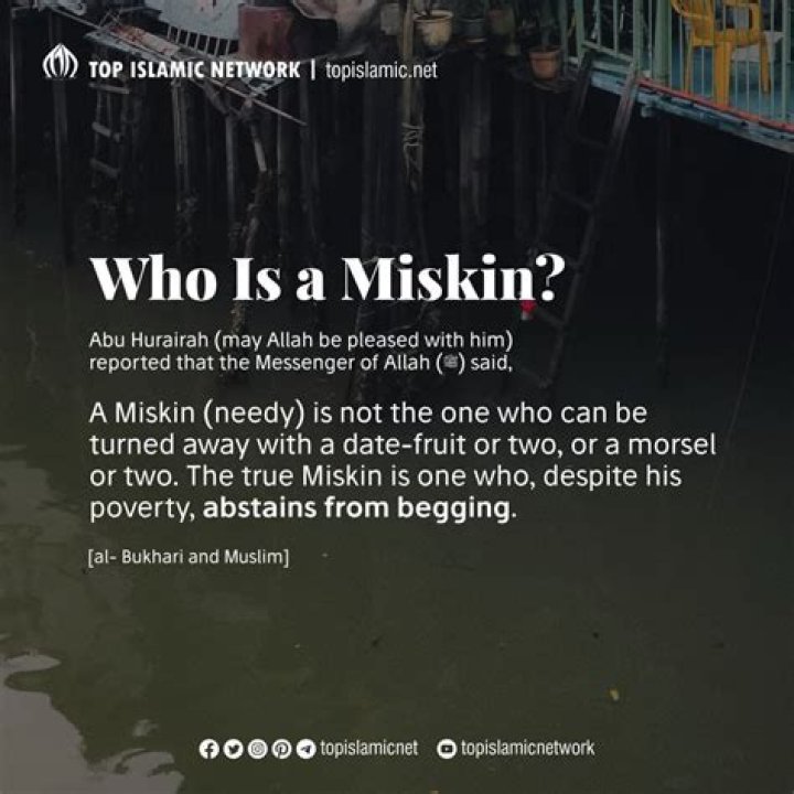 In Islam, helping the miskeen is considered a religious obligation and a fundamental principle of social justice. Zakat, one of the five pillars of Islam, is an obligatory charitable contribution specifically designated to support the miskeen and other vulnerable groups.Question 4: How does the understanding of "miskeen" contribute to social responsibility?